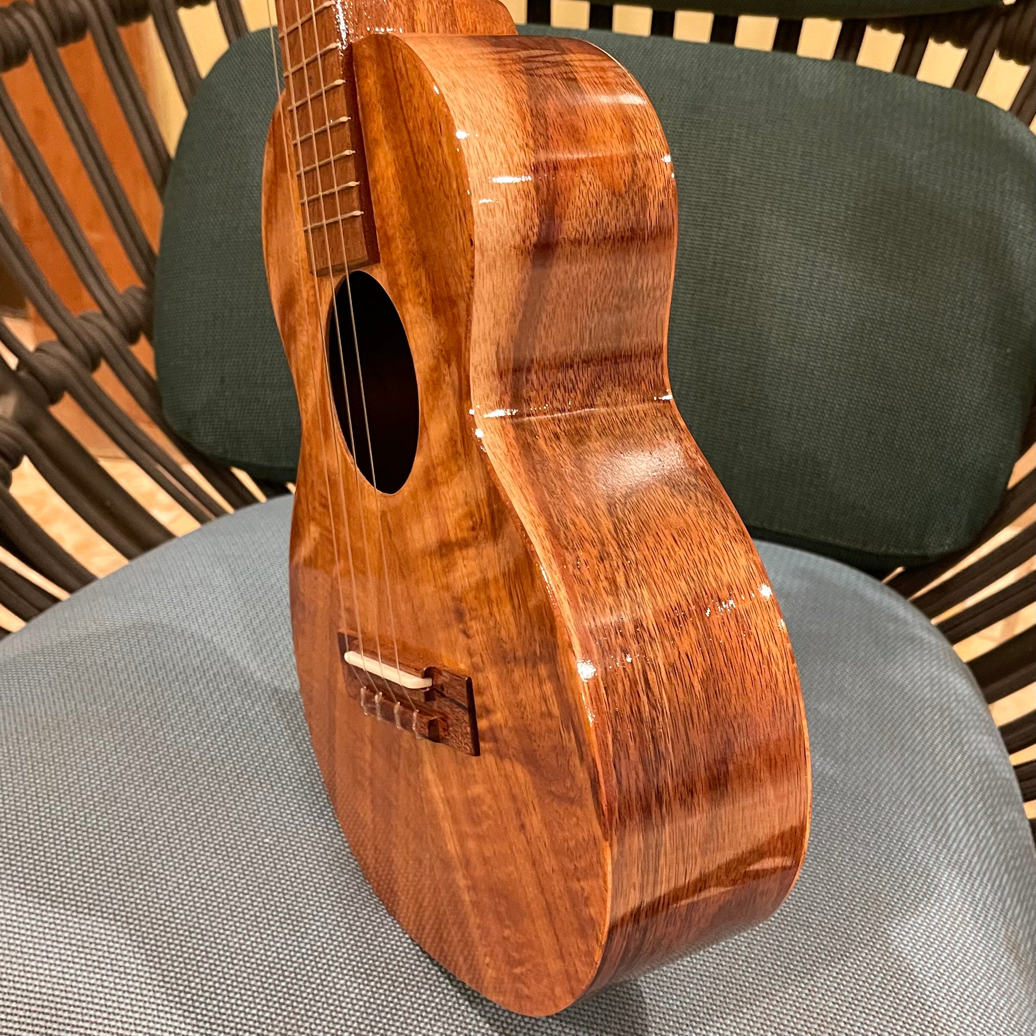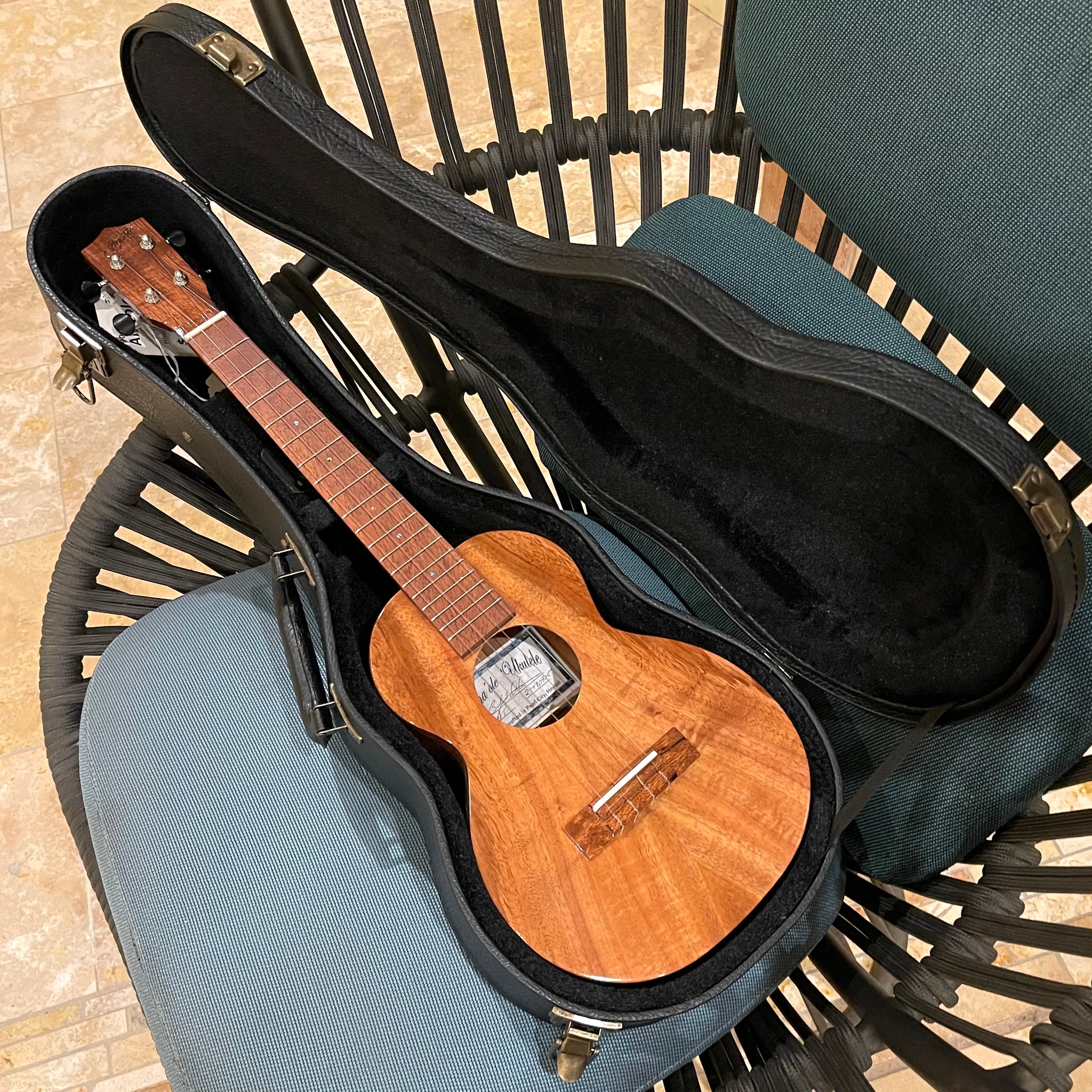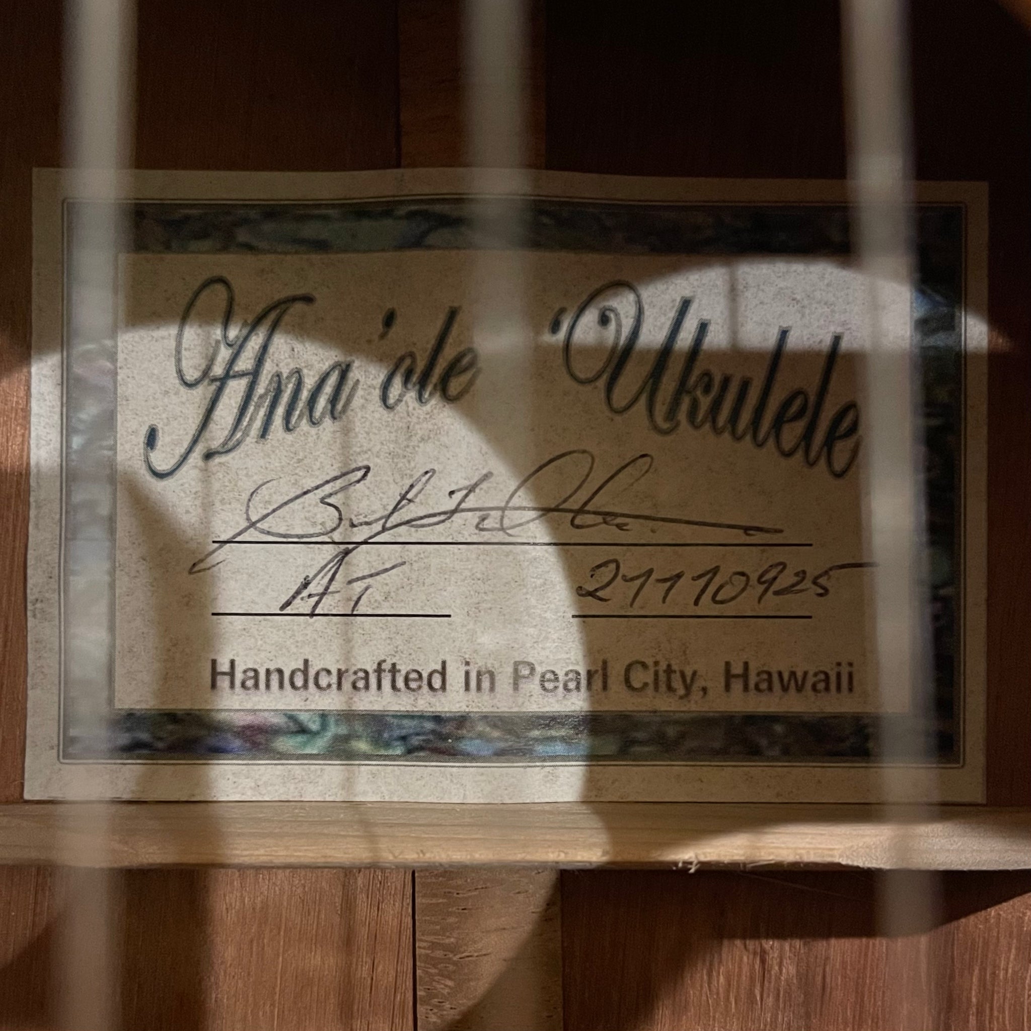 The Ana'ole AT Tenor Ukulele is a tenor sized ukulele. The body is made of solid Hawaiian koa. It has a simple design with grover geared tuners. Tone is mellow and warm. Hard case is included.
