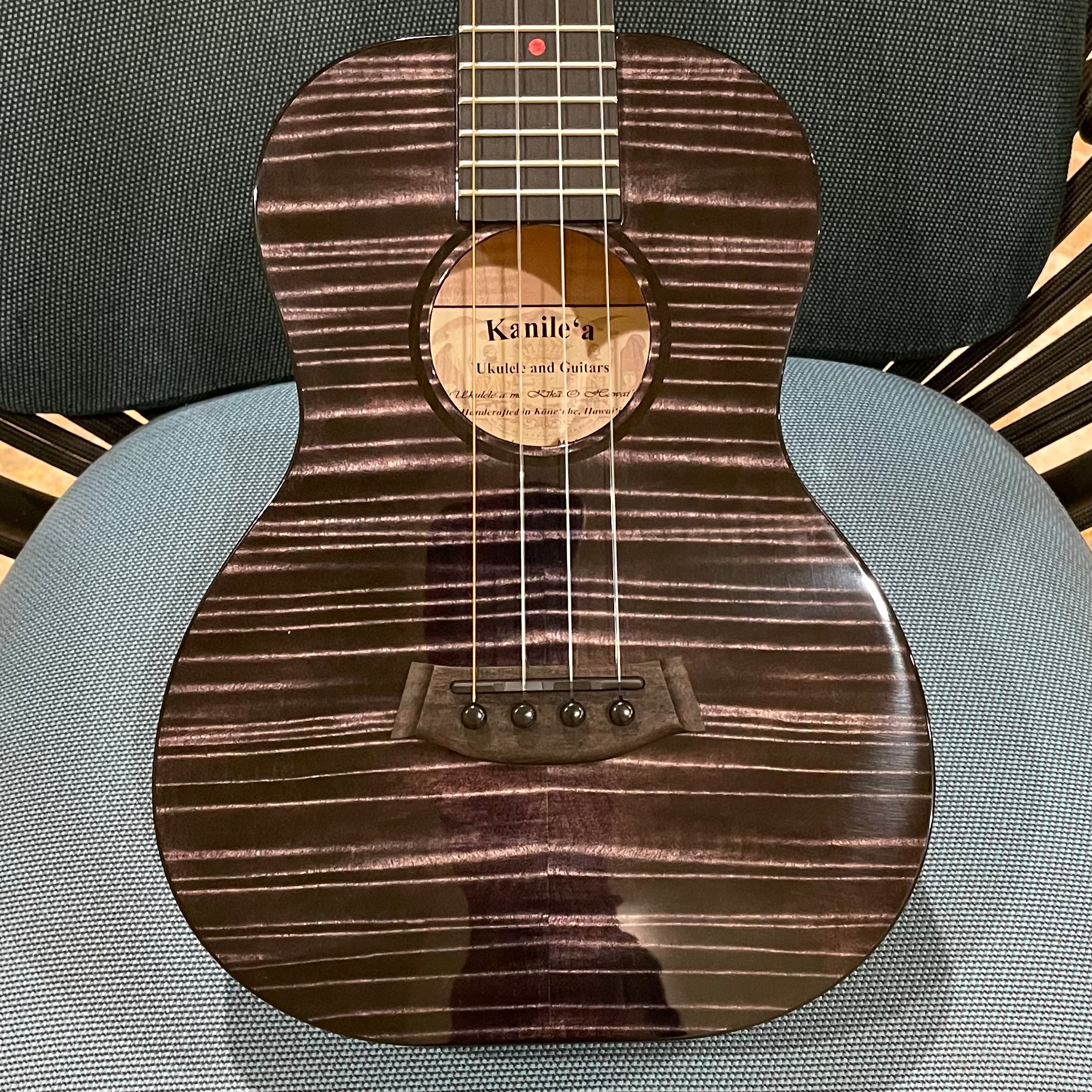 Introducing the beautiful Kanileʻa Pohaku (Stone) Pro Tenor ukulele! This ukulele is made out of a top, back and sides of solid curly maple and dyed by the Kanile'a Souza brothers, Kaimana and Kahiau, to look like stone. The Pohaku features a unique red Kanile'a logo and red poplar fret markers as well as a wound low-G. It features a unique ebony folk guitar style tweezer bridge with a graphite infused saddle for increased resonance and string health as well as a side sound port to help any performer feel the resonance of the instrument. Comes equipped with Kanileʻa original geared tuners and a high UV gloss finish on the body. Kanile'a ukuleles are known for producing a sweet tone and a well balanced resonance across all frequencies due to their Tru-redesign bracing system. The Pohaku also has the TRU-Resonance engraving under the soundboard to increase resonance. Comes with Kanile'a original carrying bag.