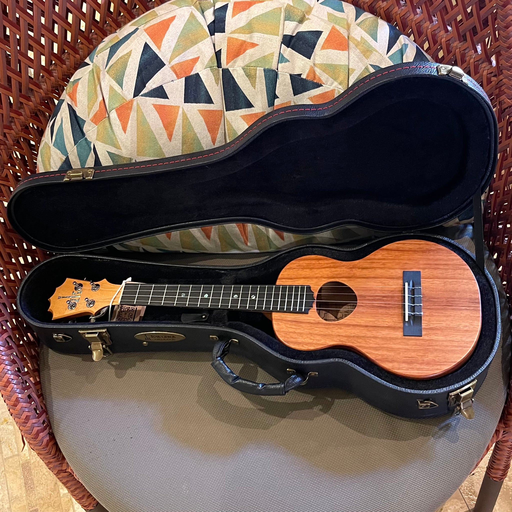 The KoAloha KTM-10 Koa Tenor Ukulele is a satin-finished tenor ukulele which has a solid Hawaiian koa body. This ukulele features the KoAloha signature five point crown shaped headstock and musubi shaped sound hole. It comes equipped with KoAloha's original geared tuners, is noticeably lightweight and well balanced, making it easy to hold and play.